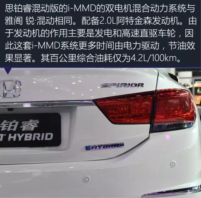 在2016廣州車展上,東風本田為我們帶來了一款新思鉑睿銳·混動車型,這是本田在中國投放的第二款國產混動車。其動力系統(tǒng)搭載了本田獨創(chuàng)的i-MMD雙電機混合動力系統(tǒng)。然而相比并不意外的動力選擇,其低調的外觀著實有些出乎意料。因為全車上下僅出現(xiàn)了幾處“Hybrid”字樣與汽油版思鉑睿不同,其余均完全一致。這么低調的混動車,我還是第一次見。不信?往下你自己來找茬吧。