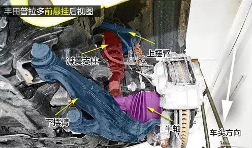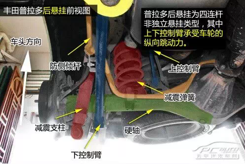 普拉多前雙叉臂式獨立懸掛在空間利用率方面雖稍遜于麥弗遜懸掛,但兩者結(jié)構(gòu)都是相當(dāng)緊湊的,且由于多了上擺臂,在抓地性和防側(cè)傾等方面的表現(xiàn)都要比后者優(yōu)秀。普拉多發(fā)動機下方有護板保護,且為鋼制。在下擺臂和車身大梁的連接方面則是使用較為簡單的螺栓連接。