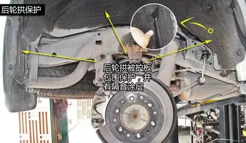普拉多前剎車卡鉗為四活塞型,左右成對布置,相較后單活塞剎車卡鉗,其制動效果、制動穩(wěn)定性以及散熱效果明顯更強。 普拉多前輪拱被大面積護板包圍保護,無隔音涂層;后輪拱在被大面積的護板包圍的同時,有隔音涂層保護。