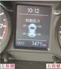 2、短按儀表上左按鍵,查找胎壓異常的輪胎,在儀表中間顯示屏上輪胎旁邊顯示“!”符號,說明該輪胎胎壓缺氣;找到對應(yīng)的車輪,并排除輪胎故障